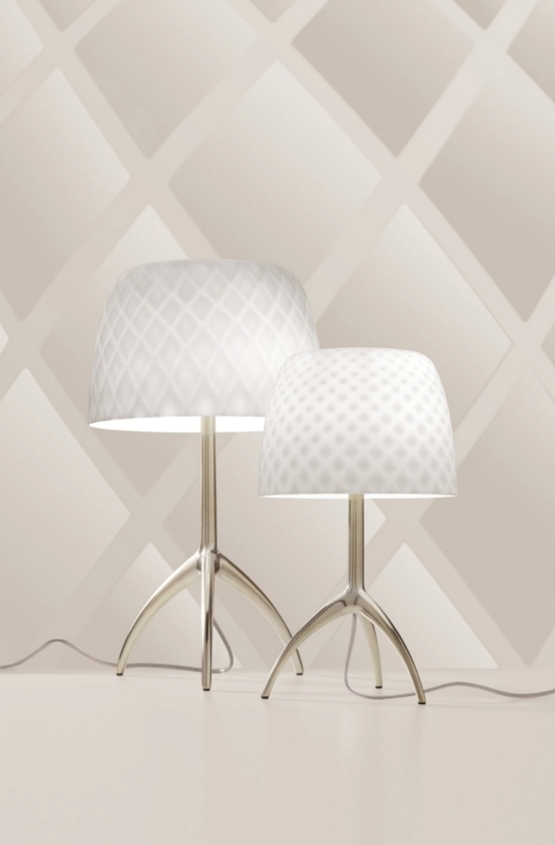Lumiere Grande is een klassieke en zeer elegante tafellamp met aluminium frame en mondgeblazen glazen kap.
