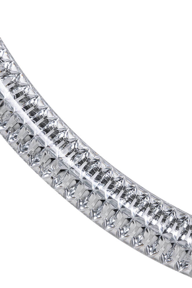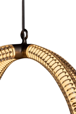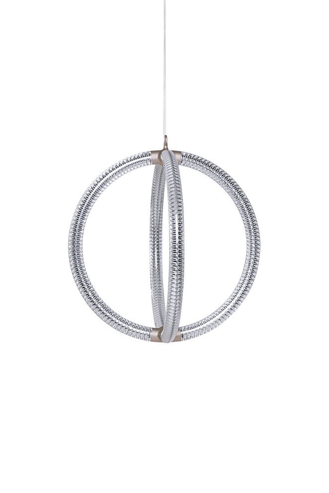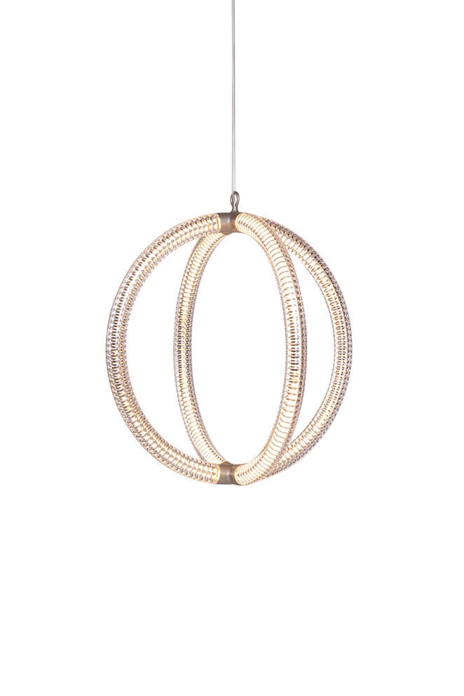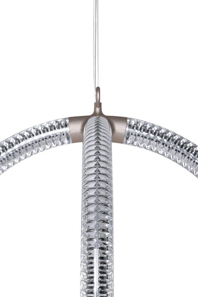 Luminora Light heeft een zwevend design, waarbij de structuur van de hanglamp ook de LED-lichtbronnen van de lamp zijn. De flexibele transparante LED-buizen van polycarbonaat hebben een V-vormig diamantpatroon met een fascinerend optisch effect, dat bijdraagt aan het maken van de lamp tot een lichtgevende sculptuur. De verbindingen aan de boven- en onderkant zijn van aluminium in de kleur pearl.