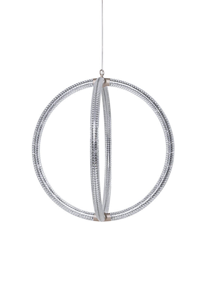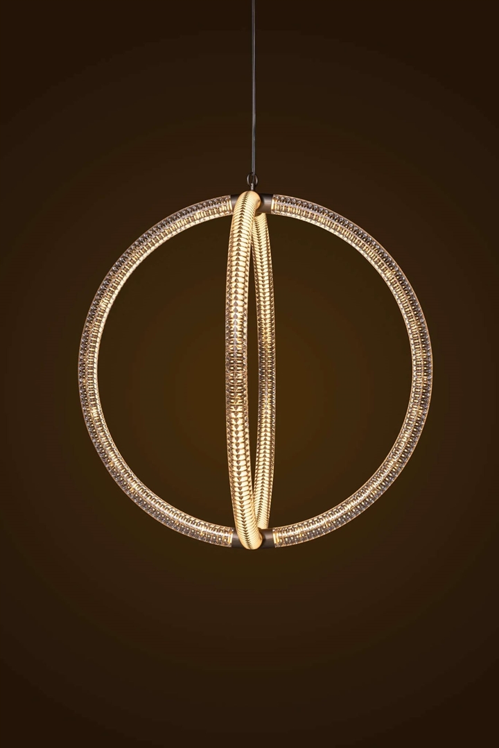 Luminora Light heeft een zwevend design, waarbij de structuur van de hanglamp ook de LED-lichtbronnen van de lamp zijn. De flexibele transparante LED-buizen van polycarbonaat hebben een V-vormig diamantpatroon met een fascinerend optisch effect, dat bijdraagt aan het maken van de lamp tot een lichtgevende sculptuur. De verbindingen aan de boven- en onderkant zijn van aluminium in de kleur pearl.