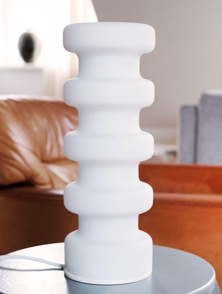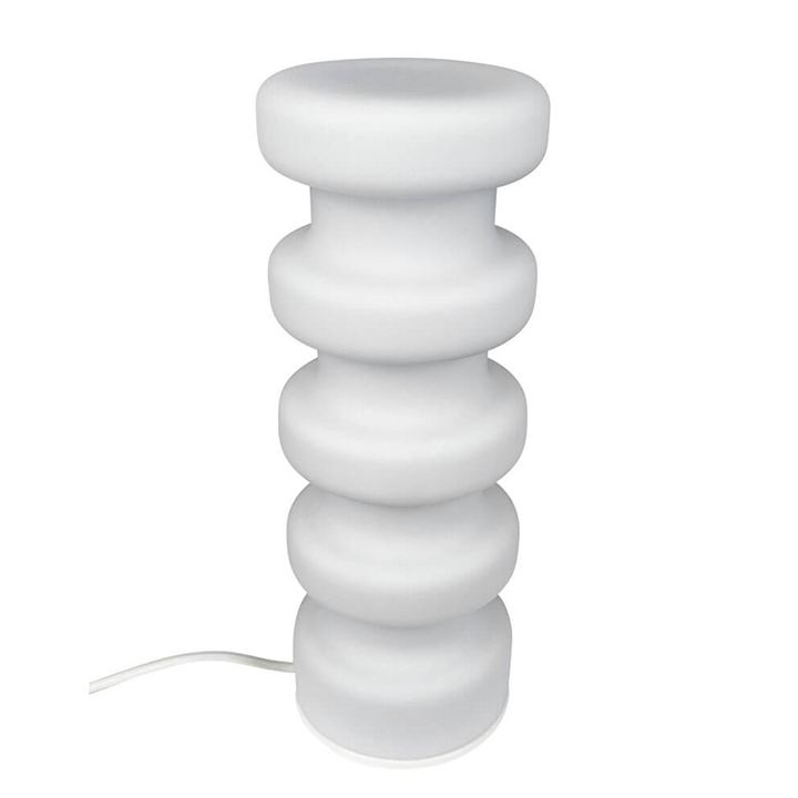 Luna tafellamp in opaalglas geeft een zacht en aangenaam licht en is met de elegante groeven een perfecte match voor een moderne inrichting. De lamp kan bijvoorbeeld op het bureau, nachtkastje of in de woonkamer worden geplaatst als een zelfstandig designelement. De tafellamp combineert praktische verlichting met een eigentijds design, waarbij de groeven karakter geven aan de uitstraling van de lamp.