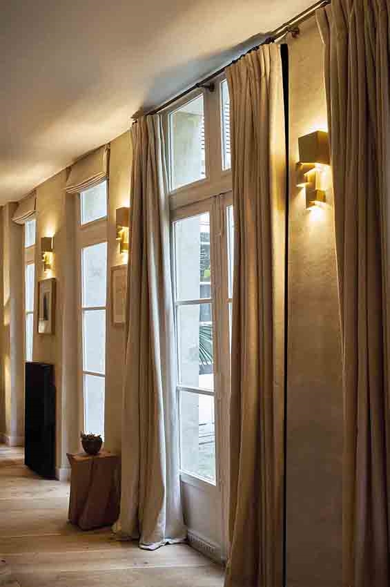 De wandlamp is van natuurlijk gelakt messing.