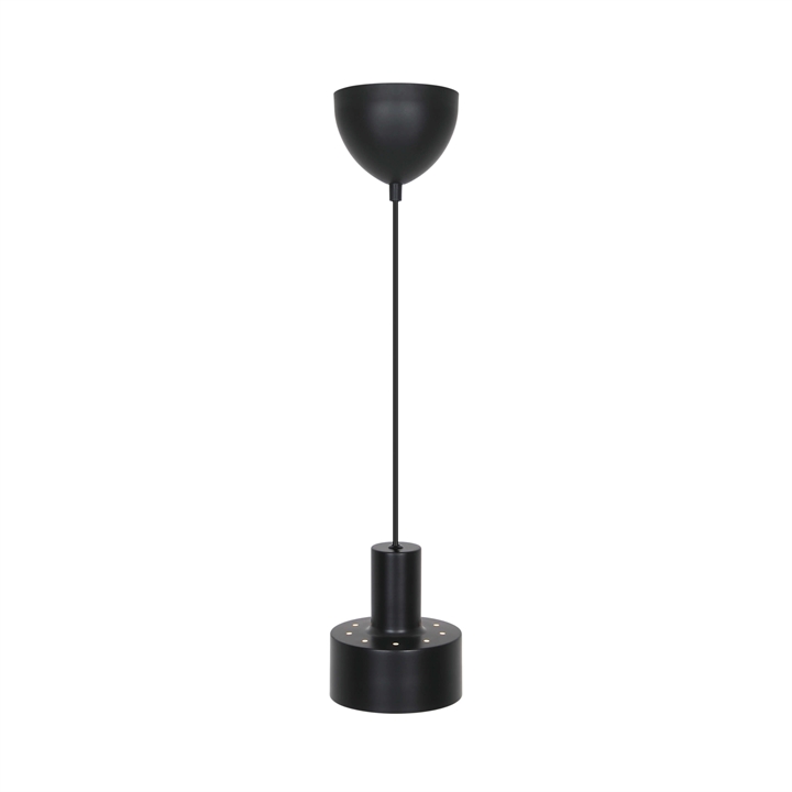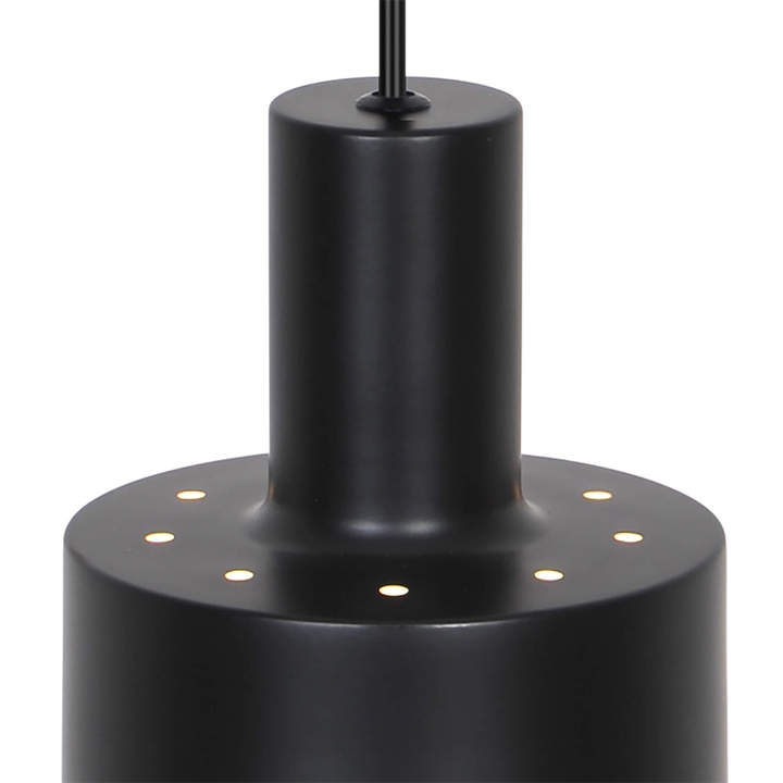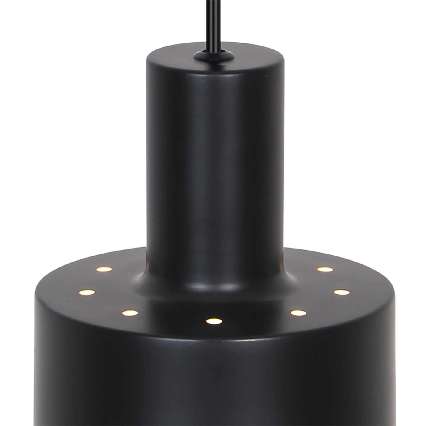 De hanglamp Matis heeft een minimalistisch design dat in veel interieurs past. De klassieke hanglamp heeft een goede neerwaartse verlichting en creëert een prachtig lichteffect door de kleine gaatjes bovenaan de kap. Gebruik hem alleen of meerdere samen als keukenlamp, werkverlichting of sfeerverlichting in een hoek van de woonkamer.