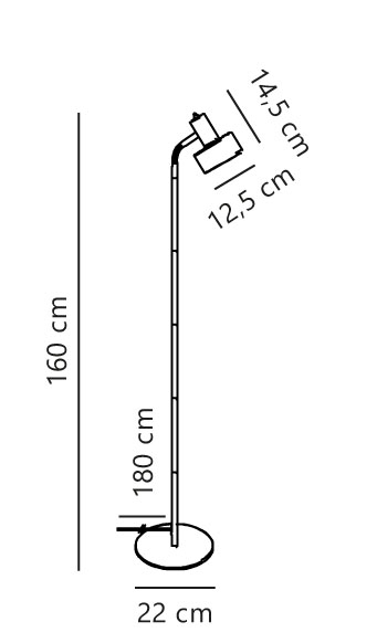 Afmetingen: H160 cm, kap: Ø12,5 x H14,5 cm, voet: Ø22 cm