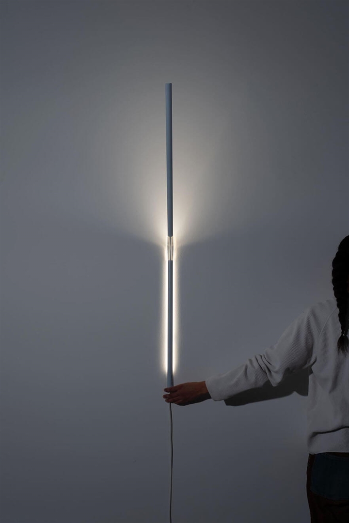De wandlamp Measure Light combineert met zijn unieke design een klassiek flexibel meetlint in metaal met een lichtband die zich over de gehele lengte van de lamp uitstrekt. Het is mogelijk om de band voorzichtig op en neer te bewegen, zodat het licht kan worden aangepast van een dunne streep tot een indirecte open lichtbron. De voorkant van het meetlintarmatuur is wit en heeft de lichtband geïntegreerd aan de achterkant, zodat het licht naar de muur is gericht. De lamp wordt aan de muur bevestigd met de meegeleverde transparante beugel.