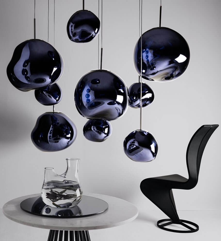 De Melt-serie is gecreëerd in samenwerking tussen Tom Dixon en het Zweedse designcollectief Front, met de wens om een onvolmaakt, organisch en naturalistisch lichtobject te creëren. De uitstraling van de serie is geïnspireerd door gesmolten glas, het binnenste van een smeltende gletsjer en beelden van de diepe ruimte.
