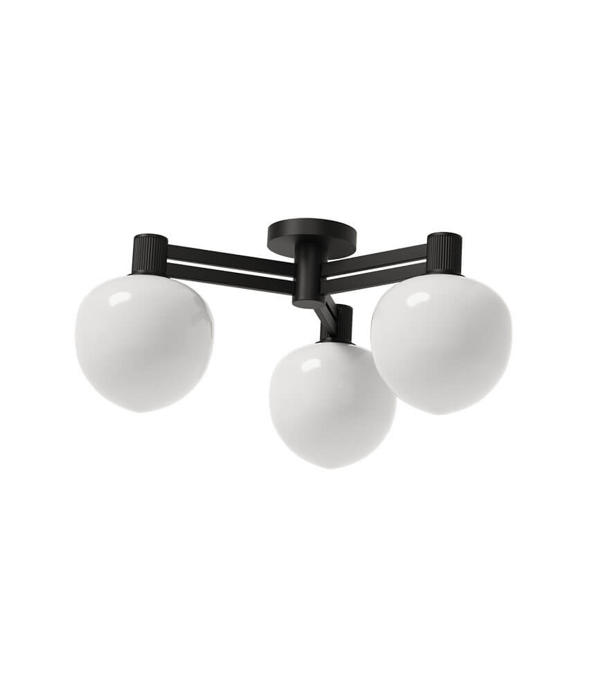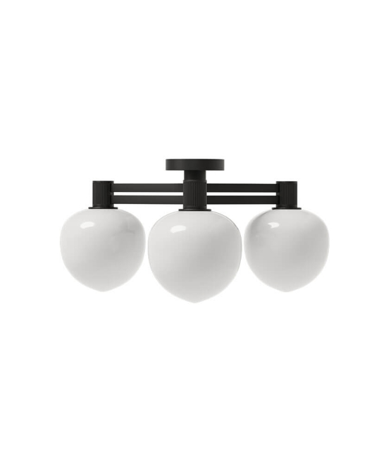 Plafondlamp bestaat uit een 3-laags opaalglas, dat prachtig wordt gecombineerd met zwarte details. Het dikke opaalglas schermt de lichtbron af, zodat het verblindingsvrij en gelijkmatig in de ruimte verschijnt.