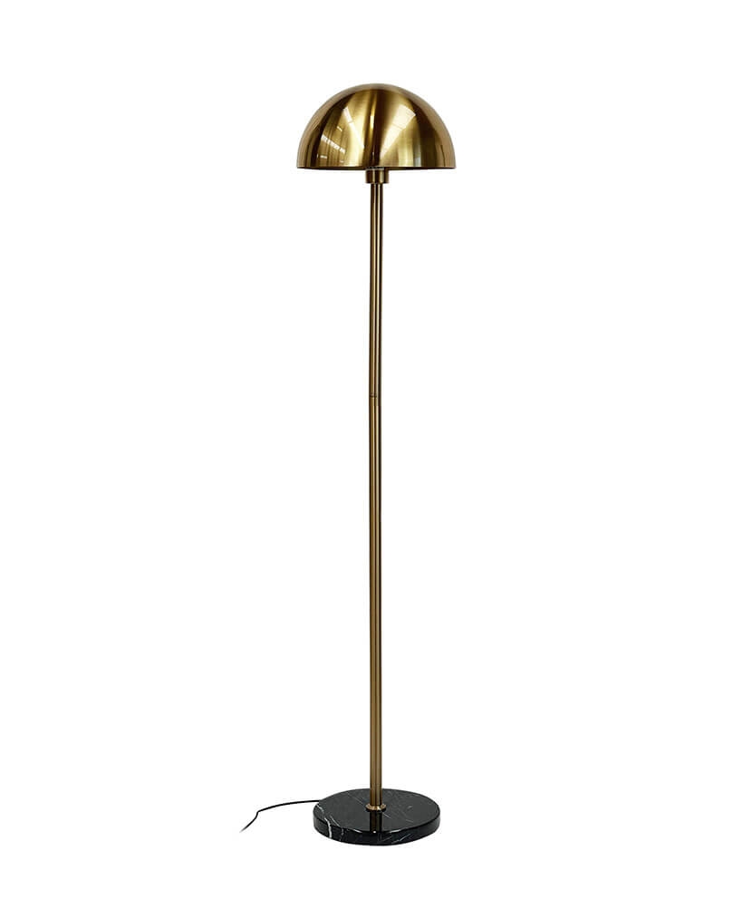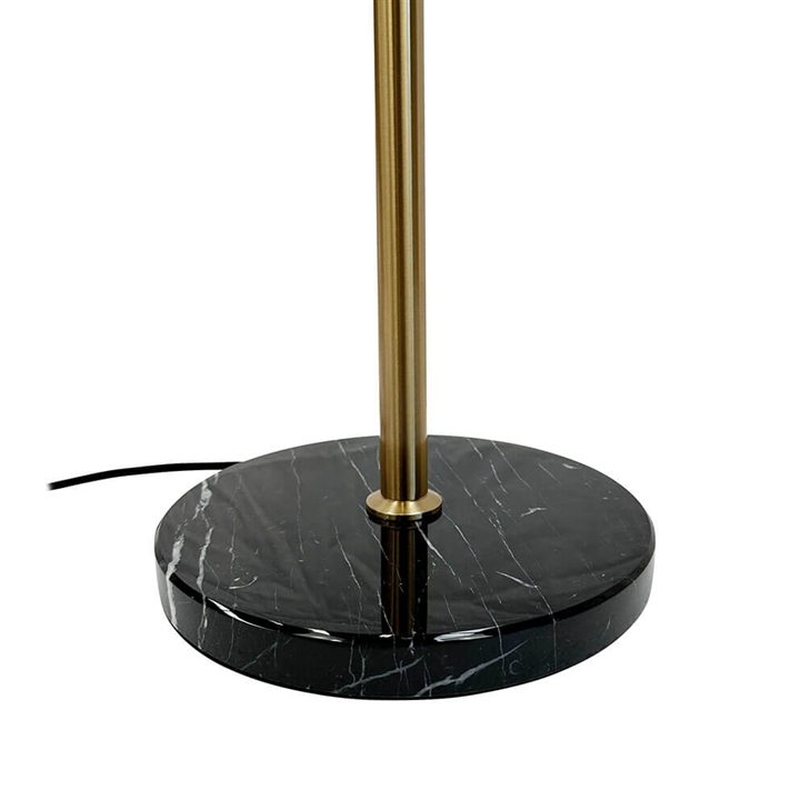 Menton vloerlamp in de serie French Collection is gemaakt van messing en heeft een stevige basis van zwart marmer. De elegante en tijdloze vloerlamp heeft een exclusieve uitstraling, en de koepelvormige lampenkap zorgt voor een zacht en gelijkmatig licht, dat bijvoorbeeld kan worden gebruikt als sfeerverlichting in de woonkamer.