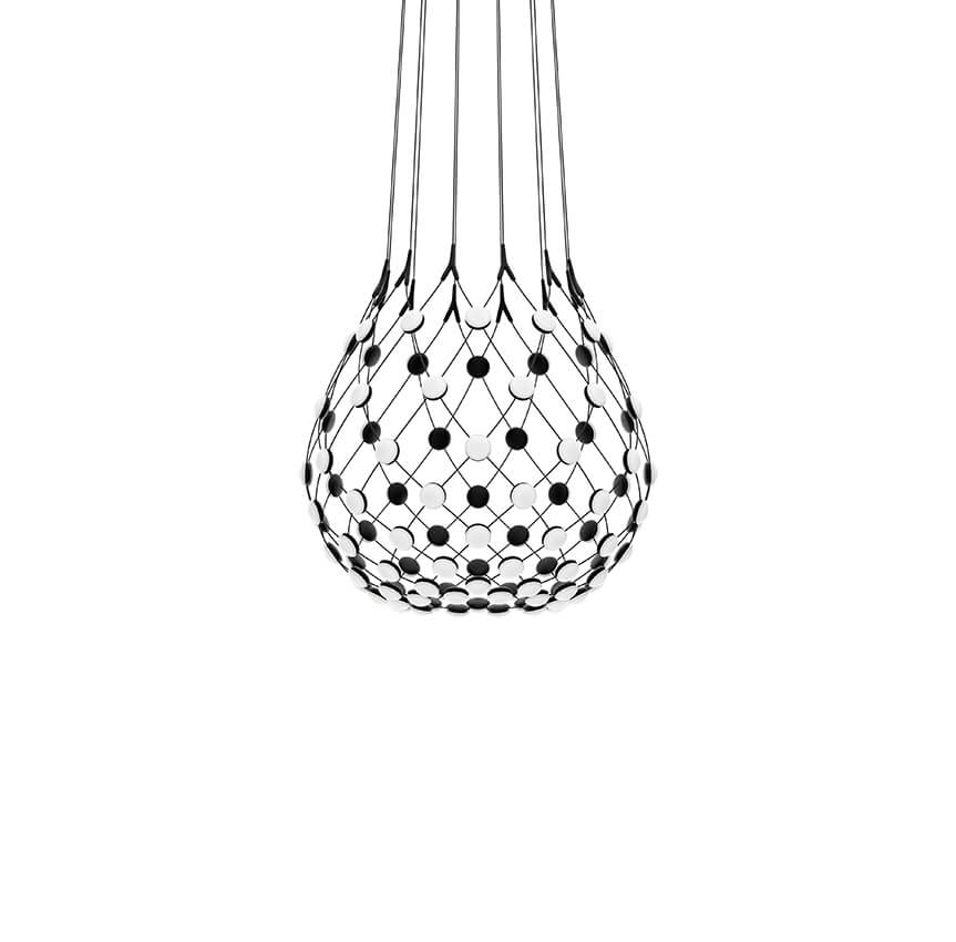 Mesh heeft een uniek ontwerp en biedt een groot theatraleffect op de plek waar hij hangt. Door de vorm van de lamp wordt er een grote lichtverdeling bereikt. Het zou daarom essentieel kunnen zijn om deze boven een eettafel te hangen.