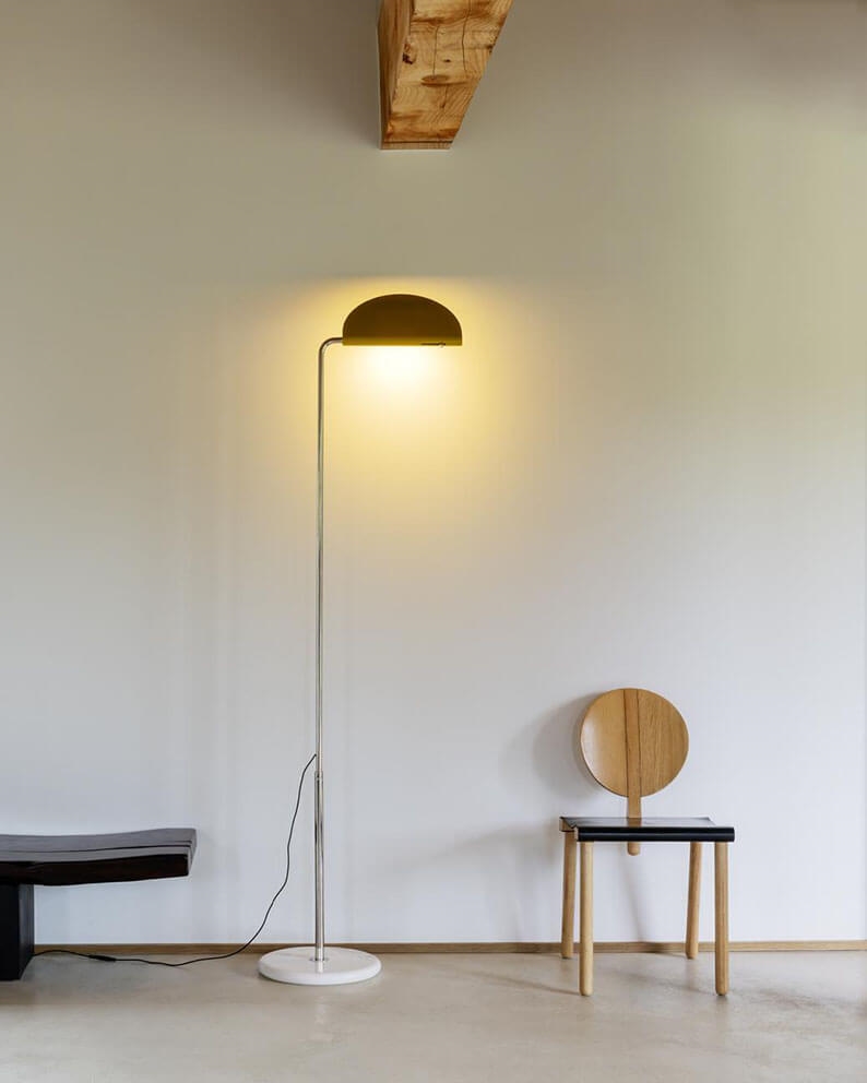De iconische Mezzaluna vloerlamp ontworpen in 1975 door Bruno Gecchelin is een internationale bestseller en een referentiepunt binnen Italiaans design. Deze heruitgebrachte versie met de kenmerkende halve maanvormige kap is uitgerust met een geïntegreerde dimbare LED-lichtbron die tot 6000 lumen levert. De kleurtemperatuur van het licht kan met de meegeleverde filters worden aangepast van 3000K naar 2700K of 2400K.