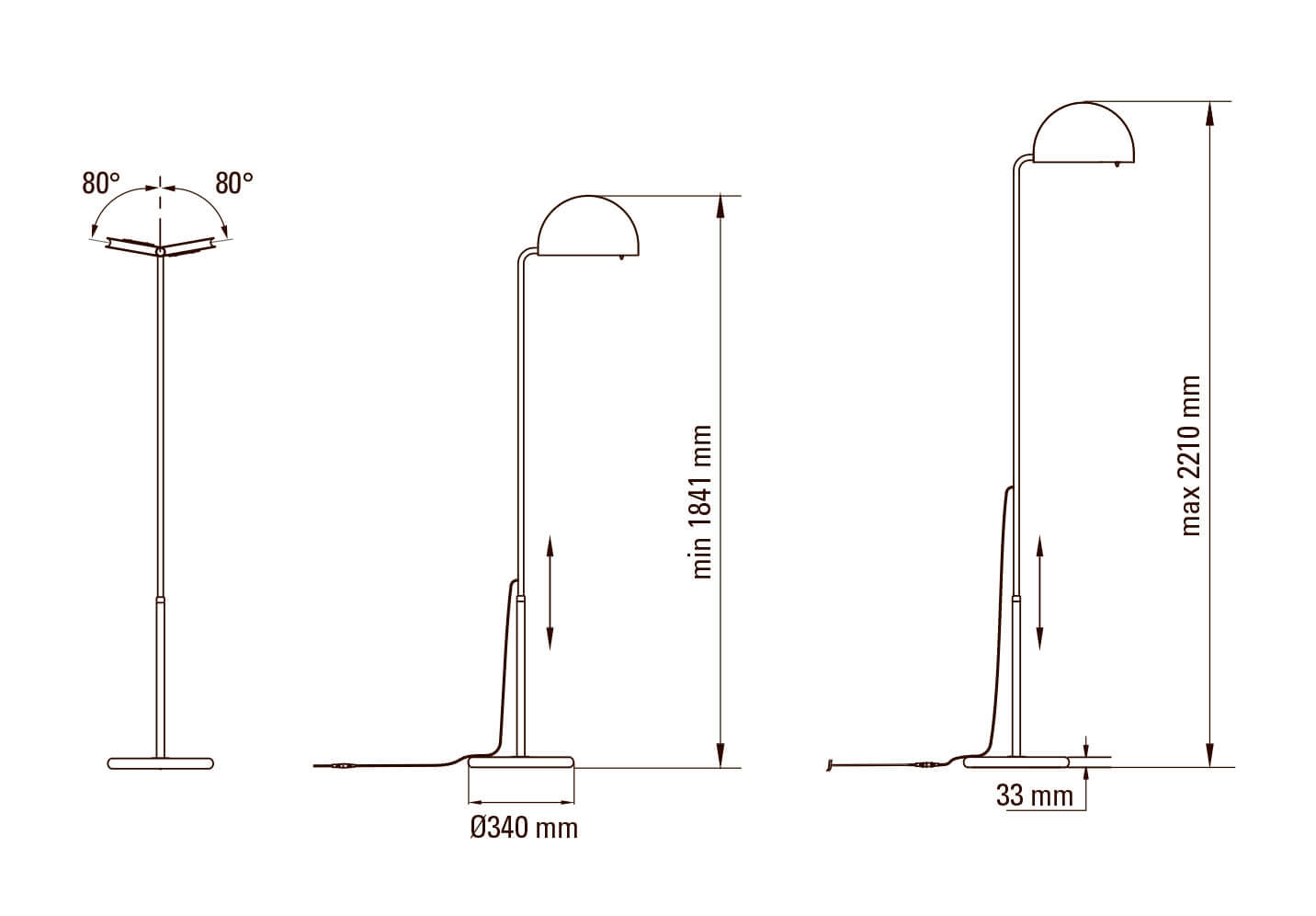 Afmetingen: H184-221 cm, basis: Ø34 cm