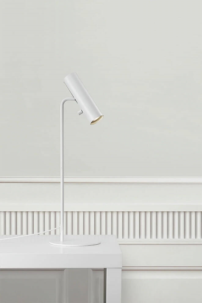 De tafellamp MIB 6 levert een nauwkeurig en gericht licht met een lampenkap die 90° kan kantelen en 320° kan draaien. Gebruik hem op het bureau, de plank of het nachtkastje en voeg functionele en elegante verlichting toe aan je interieur.