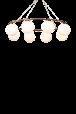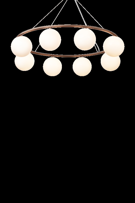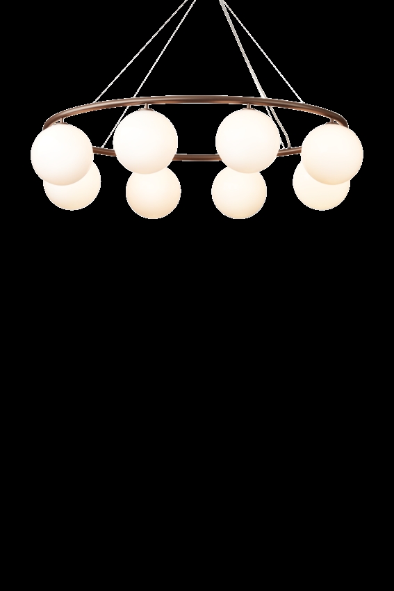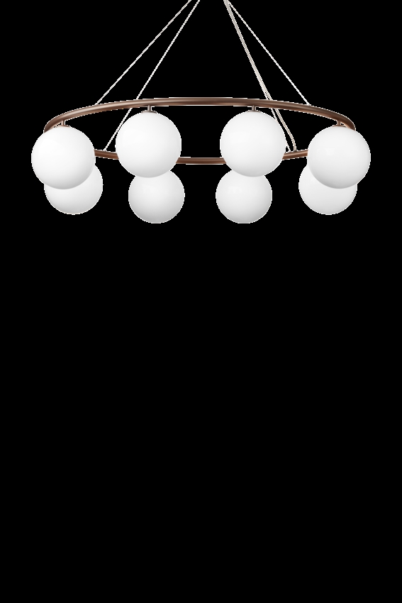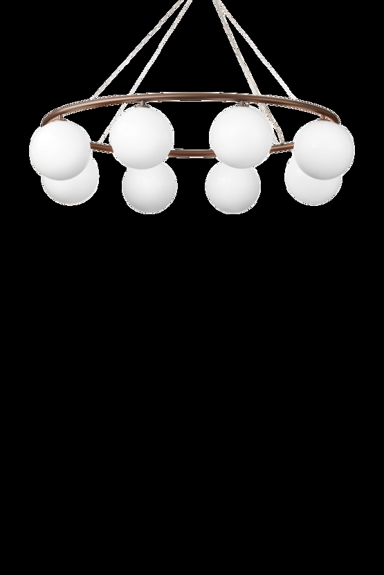 De Miira-kroonluchter bestaat uit een metalen ring van geanodiseerd aluminium in een donker bronskleur. Van hieruit verspreiden de prachtige mondgeblazen glazen bollen in opaalglas een zintuiglijk licht. Het eenvoudige en klassieke ontwerp maakt de kroonluchter zeer geschikt voor vele interieurs.