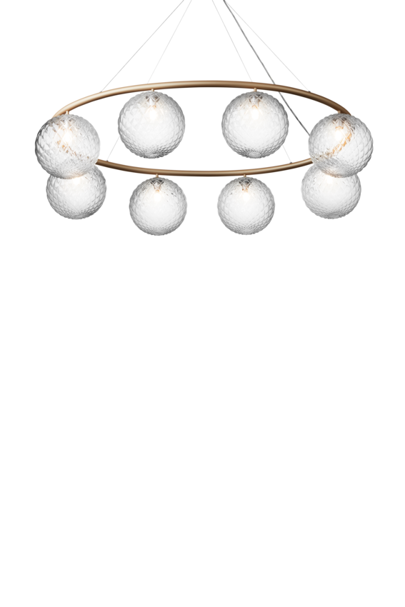 De Miira-kroonluchter bestaat uit een metalen ring van geanodiseerd aluminium in een prachtige messingkleur. Van hieruit verspreiden de prachtige mondgeblazen glazen bollen een sfeervol licht. Het eenvoudige en klassieke ontwerp maakt de kroonluchter zeer geschikt voor vele interieurs.