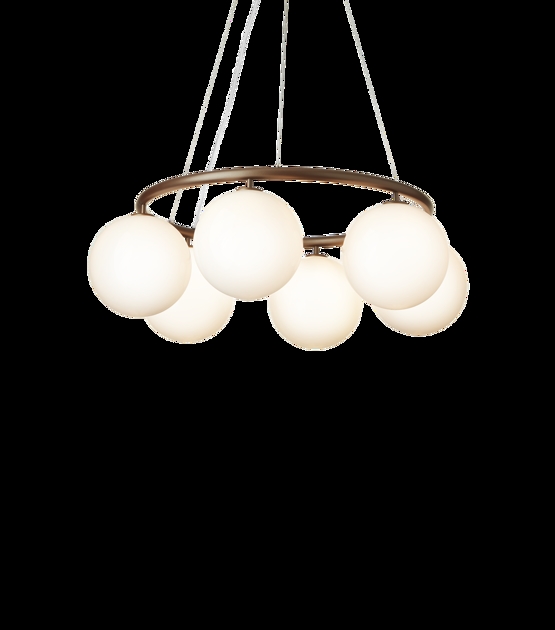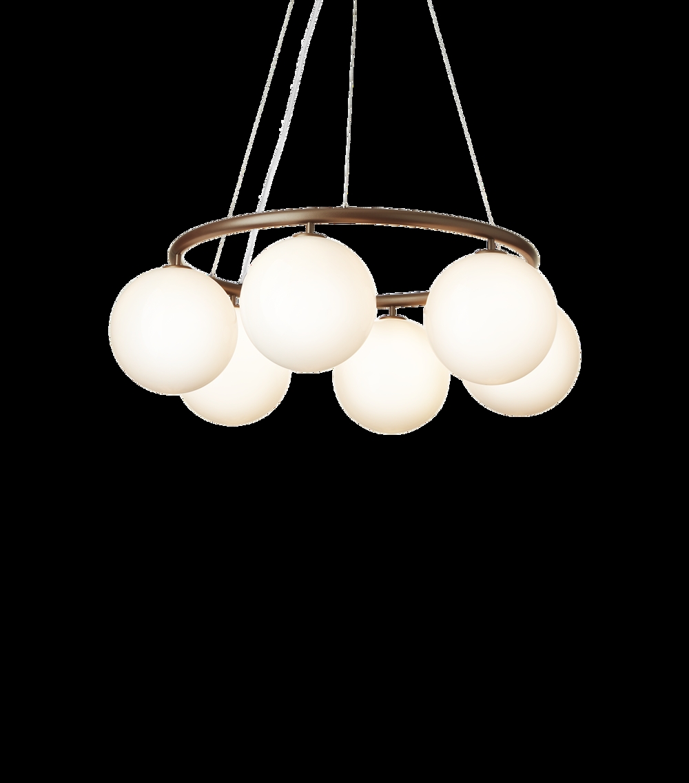 Miira 6 Circular bestaande uit zes mondgeblazen glazen bollen heeft een diameter van 80 cm. Dit maakt de kroonluchter ideaal boven een eettafel of zithoek.