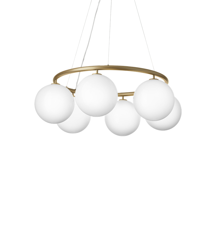 De Miira-collectie van Nuura heeft al prijzen gewonnen voor het ontwerp van Sofie Refer en wordt hier uitgebreid met een cirkelvormige kroonluchter. De kroonluchter is verkrijgbaar in twee verschillende maten - met 6 of 8 mondgeblazen glazen kappen. Miira Circular kroonluchter heeft een klassiek uiterlijk en is ontworpen om zowel laag als hoog aan het plafond te hangen. De hoogte kan eenvoudig worden aangepast van 45 tot 250 cm met het speciale draadsysteem. De Miira-kroonluchter bestaat uit een gepoedercoate metalen ring in messing. Van hieruit verspreiden de mooie mondgeblazen glazen kappen in opaalglas een sensueel licht. Het eenvoudige en klassieke ontwerp betekent dat de kroonluchter uiterst veelzijdig is in veel interieurs.