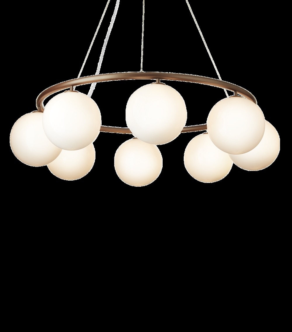 Miira Circular 8 kroonluchter, opaal/donker brons van Nuura - ontworpen door Sofie Refer
