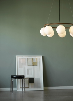Nuura's Miira-collectie heeft al prijzen gewonnen voor het ontwerp van Sofie Refer en wordt hier uitgebreid met een cirkelvormige kroonluchter. De kroonluchter is verkrijgbaar in twee verschillende maten - met 6 of 8 mondgeblazen glazen bollen. Miira Circular kroonluchter heeft een klassiek uiterlijk en is ontworpen om zowel laag als hoog aan het plafond te hangen. De hoogte kan eenvoudig worden aangepast van 45 tot 250 cm met het speciale draadsysteem. De Miira-kroonluchter bestaat uit een gepoedercoate metalen ring in een nieuwe donker bronzen kleur. Van hieruit verspreiden de prachtige mondgeblazen glazen bollen in opaalglas een zintuiglijk licht. Het eenvoudige en klassieke ontwerp maakt de kroonluchter zeer geschikt voor vele interieurs.