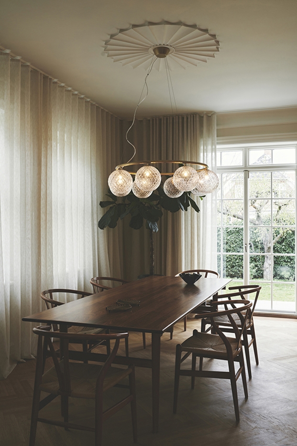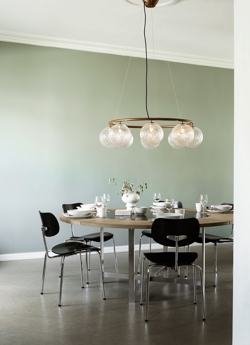 De Miira-collectie van Nuura heeft al prijzen gewonnen voor het ontwerp van Sofie Refer en wordt hier uitgebreid met een cirkelvormige kroonluchter. De kroonluchter is verkrijgbaar in twee verschillende maten - met 6 of 8 mondgeblazen glazen bollen. Miira Circular kroonluchter heeft een klassiek uiterlijk en is ontworpen om zowel laag als hoog aan het plafond te hangen. De hoogte is eenvoudig aan te passen van 45 tot 250 cm met het speciale draadsysteem. De Miira-kroonluchter bestaat uit een poedergecoate metalen ring in een nieuwe donkere bronskleur. Van hieruit verspreiden de prachtige mondgeblazen glazen bollen in optisch glas een prachtig licht. Het eenvoudige en klassieke ontwerp maakt de kroonluchter zeer geschikt voor veel interieurs.
