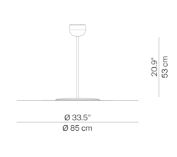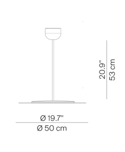 Millimetro is met zijn vaste stang tussen plafond en kap een kruising tussen een klassieke plafondlamp en een hanglamp. De dunne kap met spiegeleffect verbergt de lichtbron, die een gelijkmatig zacht licht uitstraalt.