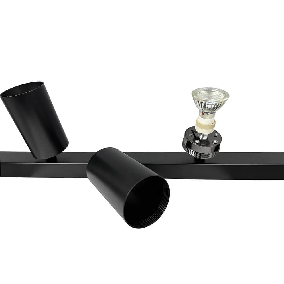 De moderne plafondrail met vier spots biedt een verstelbaar en gericht licht en kan bijvoorbeeld worden gebruikt als lamp in de hal, kantoor, keuken, slaapkamer of een andere plek waar behoefte is aan goed spotlicht. De moderne rail met de vier spots heeft een modern ontwerp in tijdloos zwart dat in veel verschillende interieurs past.