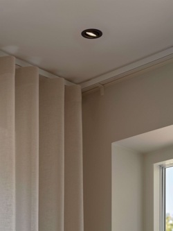 De inbouwspot is eenvoudig te installeren en de LED-lichtbron heeft een lange levensduur. Verkrijgbaar in wit of zwart en kan besteld worden in een kit met één spot of drie spots.