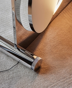 De vloerlamp is gemaakt van verchroomd aluminium.