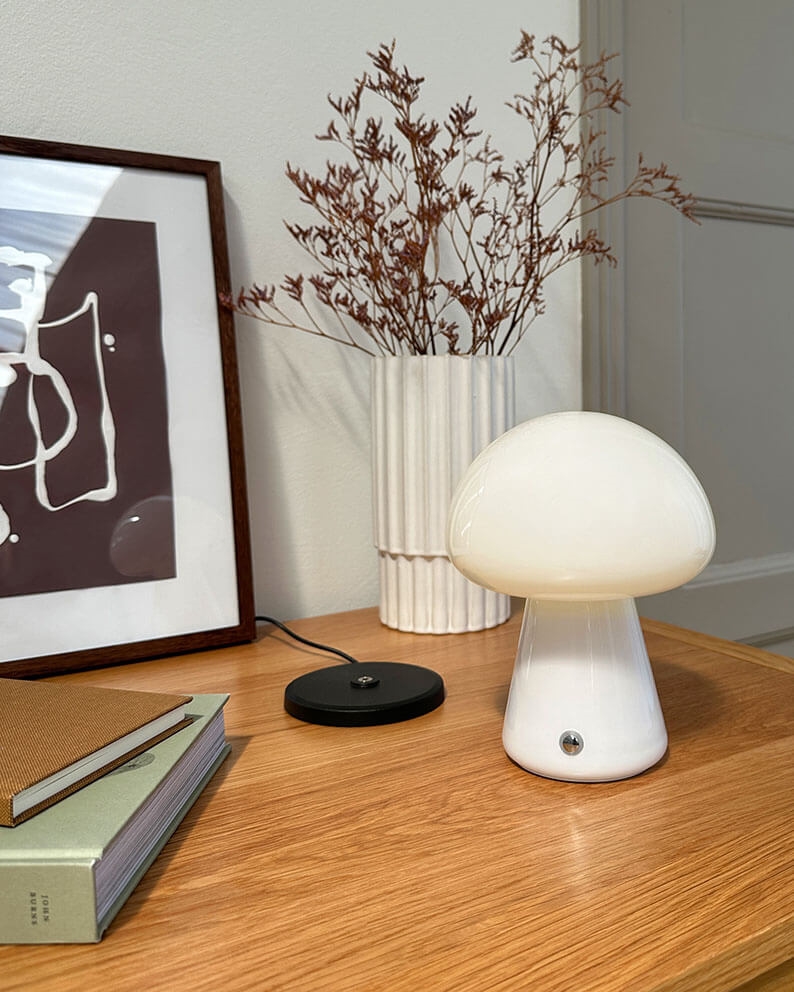 Dyberg Larsen Morkel Mushroom batterijlamp/tafellamp, wit