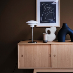 Dyberg Larsen Morph D21 tafellamp, wit/chroom - ontworpen door Frank Kerdil
