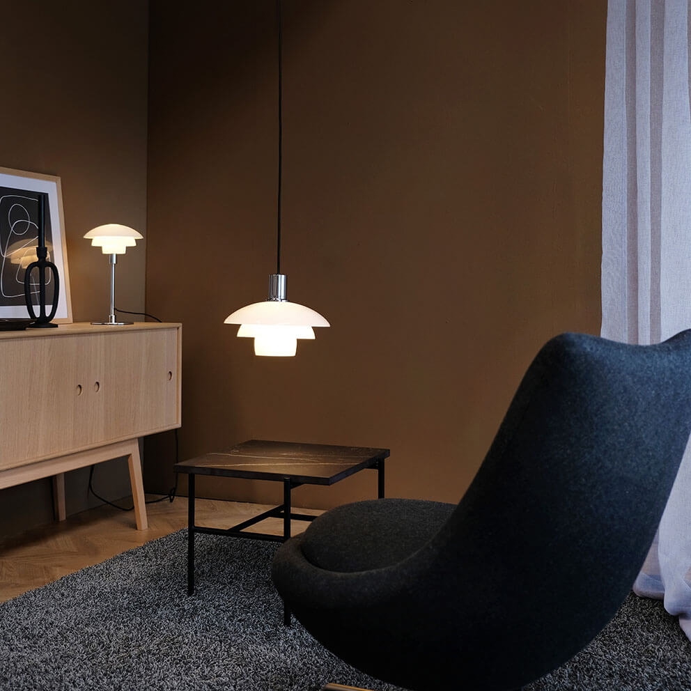Morph is verkrijgbaar als hanglamp in twee maten, evenals als tafellamp, wandlamp, vloerlamp en buitenlamp.
