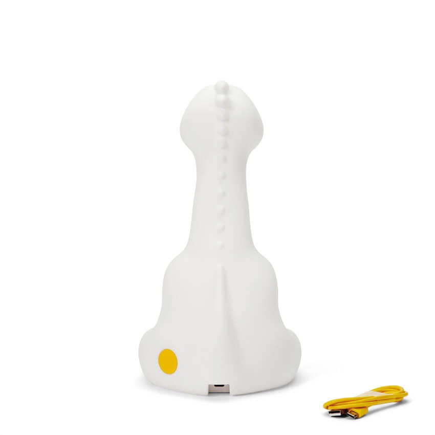 Aan/uit knop en dimknop bevinden zich aan de onderkant van de dinosaurus. Nova is gemaakt van BPA-vrije siliconen.