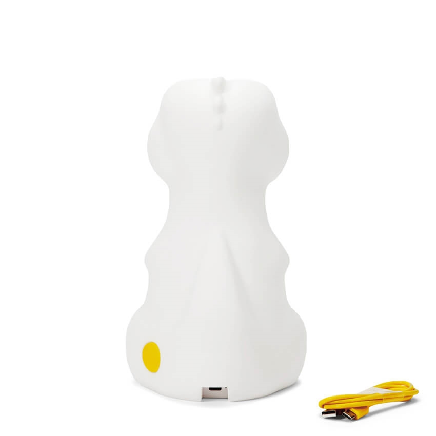 Aan/uit-knop en dimknop bevinden zich aan de onderkant van de dinosaurus. Rena is gemaakt van BPA-vrije siliconen.