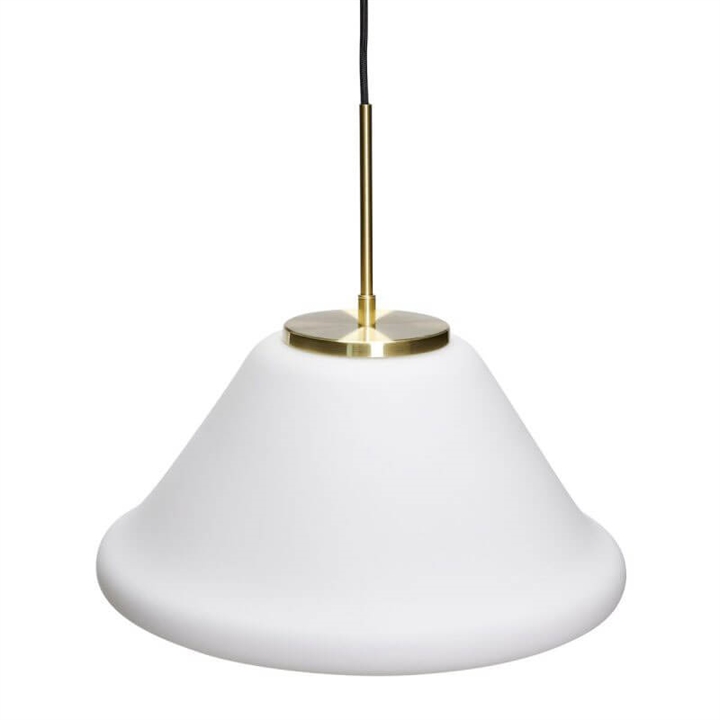 Muse met de driehoekige vorm is een elegante en eenvoudige hanglamp, die bestaat uit een kap van tijdloos wit opaalglas. Dankzij de kap verspreidt het licht zich aangenaam in de ruimte. De messing top van de lamp geeft het een vrouwelijke uitstraling en het staat prachtig boven de eettafel in zowel moderne als traditionele interieurs.