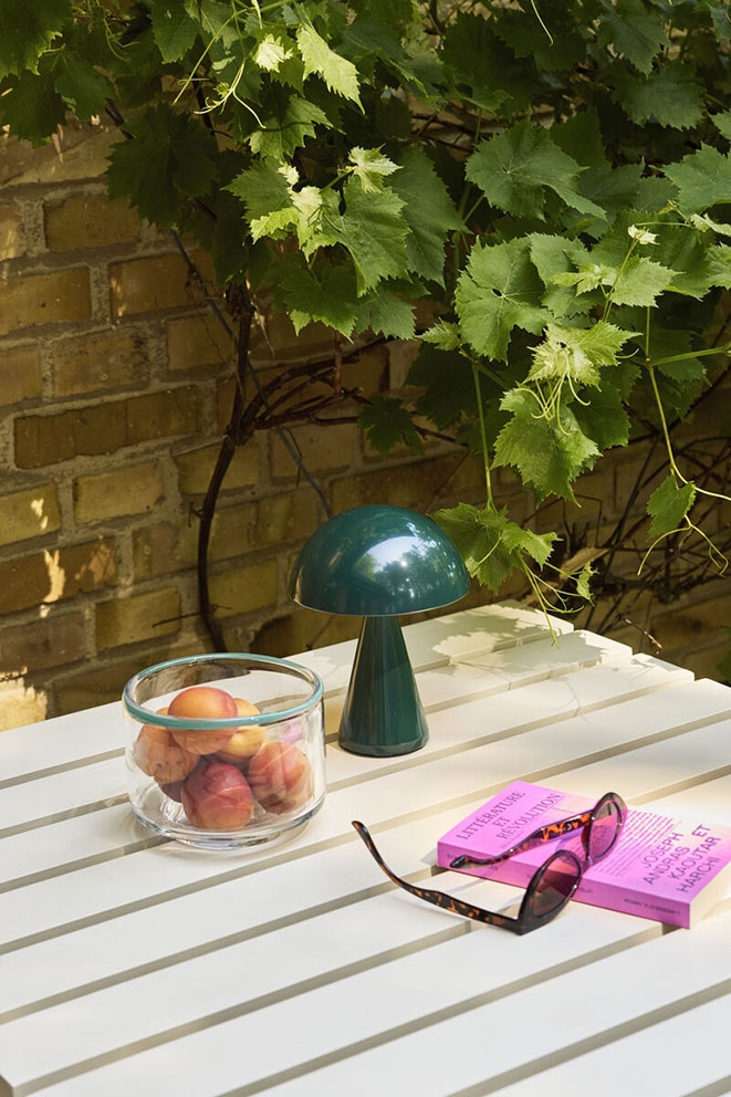 De draagbare batterijlamp Mush Portable combineert Scandinavisch design met minimalistische elegantie in een tijdloos ontwerp. De tafellamp is gemakkelijk mee te nemen en past met zijn paddenstoelachtige vorm bestaande uit een kap en kegelvormige basis goed in veel interieurs. De lamp staat prachtig op een plank, op het nachtkastje of in de vensterbank en kan ook buiten worden gebruikt als terraslamp of op het balkon.
