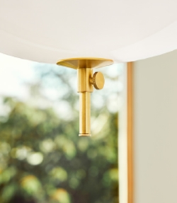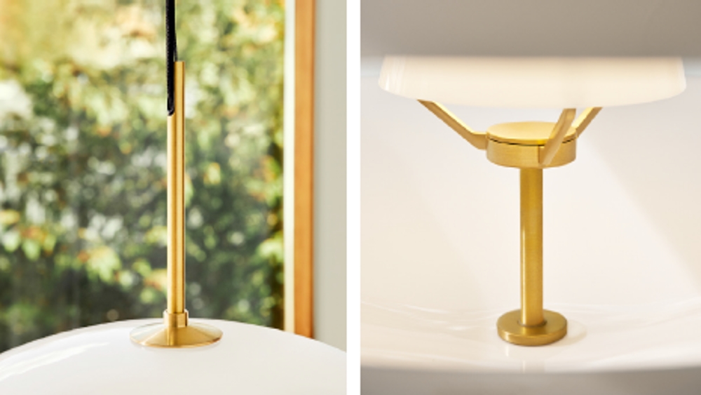 Musling is een elegante en sfeervolle hanglamp met een kap van opaalglas, versierd met de mooiste messingdetails. De verfijnde hanglamp is geïnspireerd door schelpen uit de natuur, waarbij de parel van deze schelp het licht is.