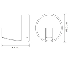 Afmetingen: Diepte 9,5 cm - Ø 9,5 cm