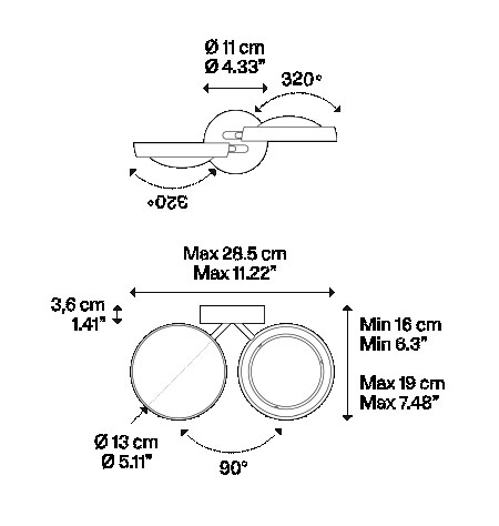 De functionele wandlamp heeft veel toepassingsmogelijkheden, omdat deze bestaat uit twee lampkoppen, die elk 320° zijwaarts en 90° op en neer kunnen draaien. Gebruik bijvoorbeeld de wandlamp als leeslamp bij de bank of het bed. Hij is ook ideaal in gangen, waar hij een schilderij of iets dergelijks kan verlichten.