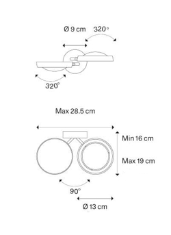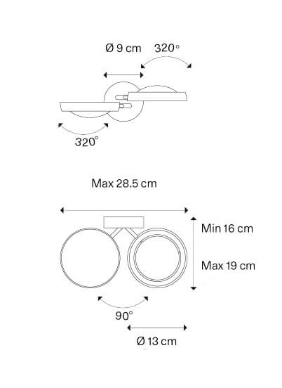 De elegante wandlamp heeft veel toepassingsmogelijkheden, omdat deze bestaat uit twee lampkoppen die elk 320° zijwaarts en 90° op en neer kunnen draaien. Gebruik bijvoorbeeld de wandlamp als leeslamp bij de bank of het bed. Hij is ook ideaal in gangen, waar hij een schilderij of iets dergelijks kan verlichten.