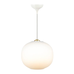 De elegante en stijlvolle hanglamp verspreidt een aangenaam licht in de ruimte met de opale kap, die het licht zacht en diffuus maakt. Navone is gemaakt van glas en metaal, en heeft kleine details van messing die een vrouwelijke touch aan de lamp geven.