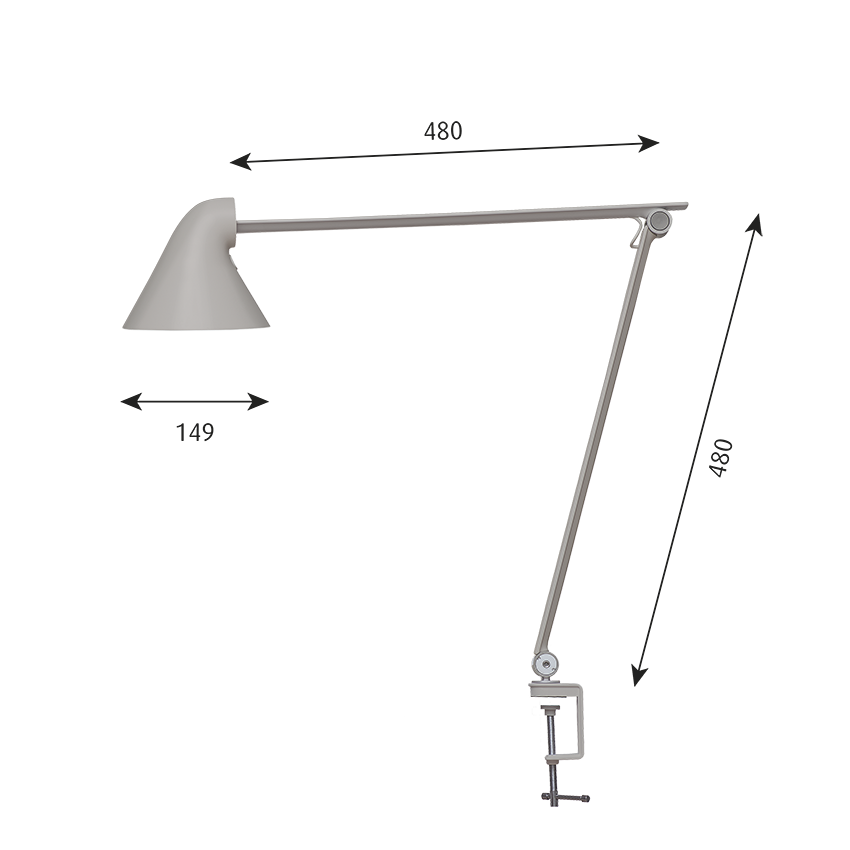 Louis Poulsen NJP tafellamp m/bureauklem, licht alu grijs - ontworpen door nendo - Oki Sato.