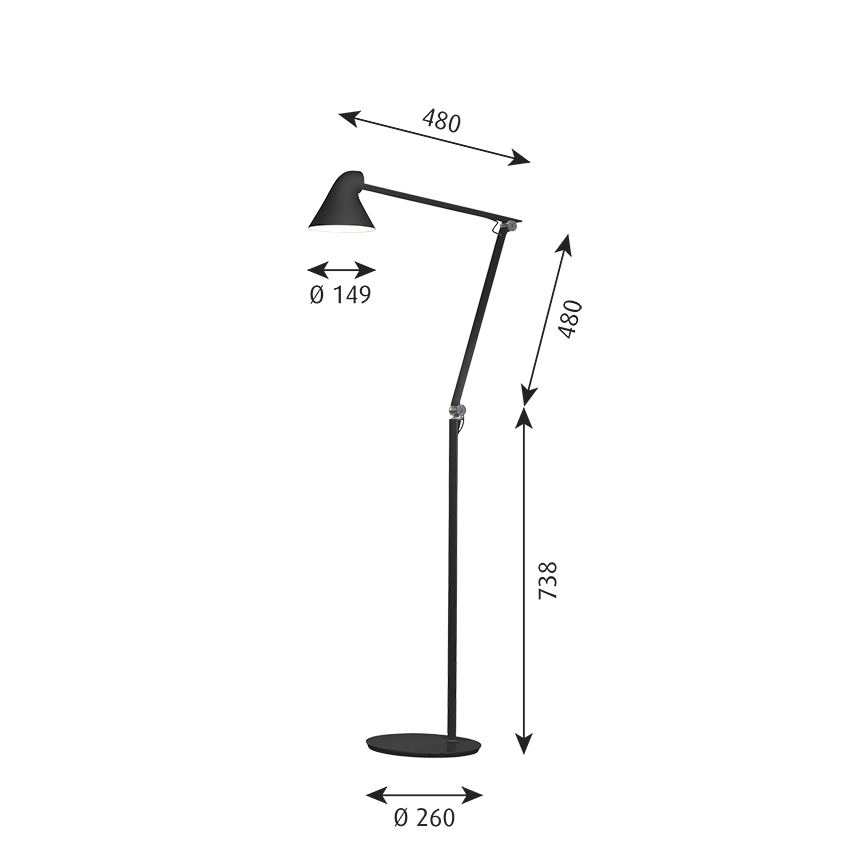 Louis Poulsen NJP vloerlamp, zwart - ontworpen door nendo - Oki Sato.