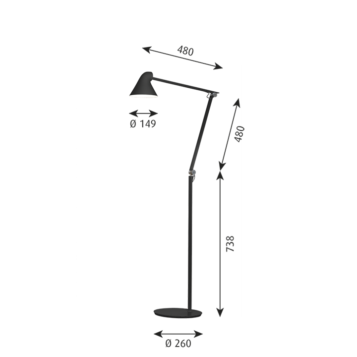 De NJP lampenserie is een moderne herinterpretatie van de klassieke architectenlamp. De vloerlamp heeft een uiterst functioneel ontwerp, waarbij zowel de kap als de armen verstelbaar zijn, zodat het licht naar behoefte kan worden aangepast.