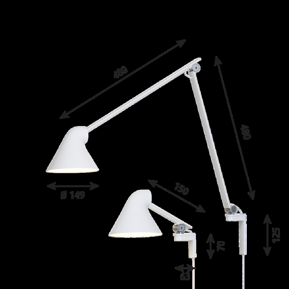 NJP wandlamp met korte arm, wit