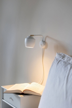 De Nola wandlamp heeft een minimalistisch en tijdloos ontwerp en is geschikt als leeslamp naast het bed in de slaapkamer of bij de bank in de woonkamer. De kap en basis zijn gemaakt van aluminium, terwijl de arm van de lamp van staal is en het scharnier van ruw messing, dat met de tijd patineert. Het licht kan gericht worden en de wandlamp kan aan- en uitgeschakeld worden met de schakelaar op de basis.