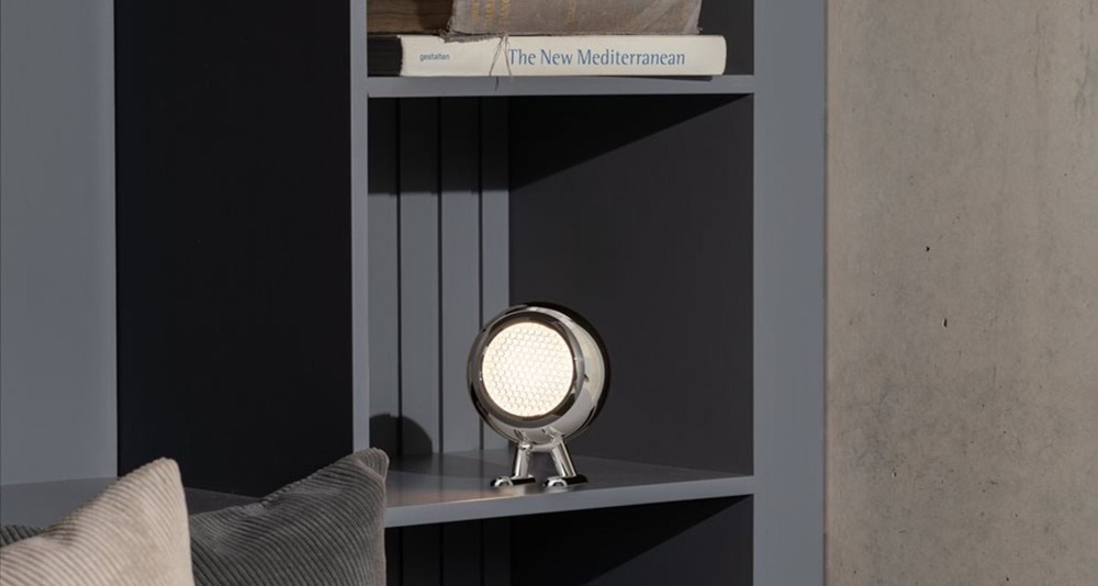 De batterijlamp Norbitt met chromen afwerking is een trouwe kleine vriend die een goede sfeer verspreidt, zowel binnen als buiten. De oplaadbare lamp kan de lampkop 360° draaien en heeft een compact ontwerp dat goed past op de tafel, de plank en in de vensterbank of op het nachtkastje in de slaapkamer of kinderkamer.