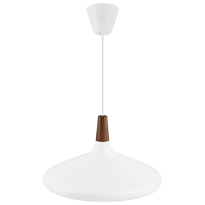 De Nori hanglamp is verkrijgbaar in veel verschillende kleuren, waardoor je verschillende uitstralingen kunt bereiken met de lamp. Alle hanglampen bestaan uit een mix van hout en metaal. De lamp is mooi op zichzelf, maar kan ook prima gecombineerd worden met andere Nori hanglampen.