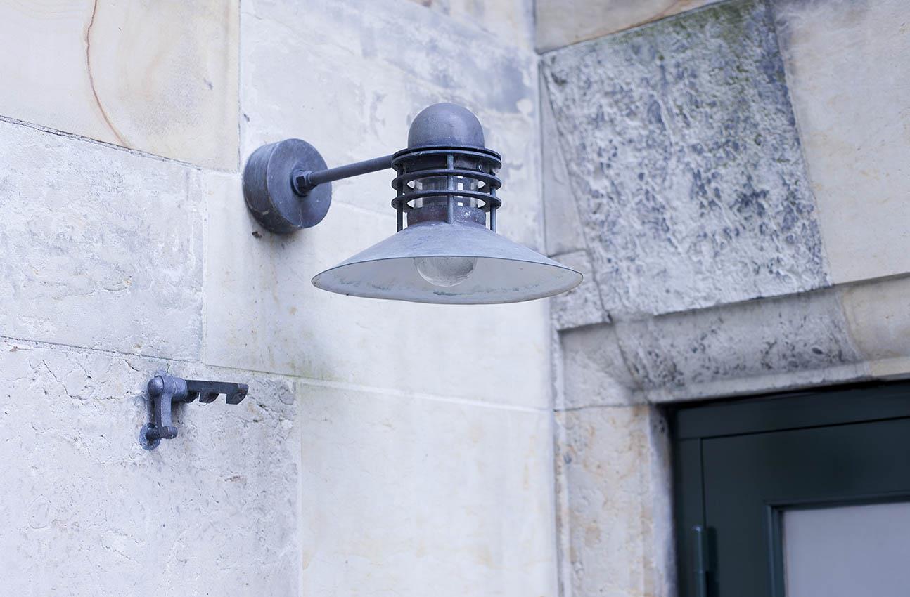 De Nyhavn buiten wandlamp werd in 1976 ontworpen met de focus op het creëren van een niet te grote lamp, die net zo veel ruimte inneemt als de overige op de markt.