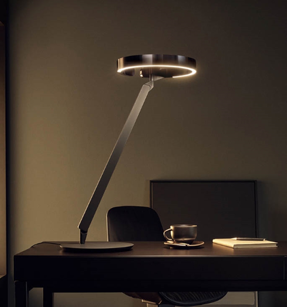 De Gioia tafellamp heeft 'Occhio Air' zodat regeling, aanpassing en dimmen ook via een app op de mobiele telefoon kunnen plaatsvinden.