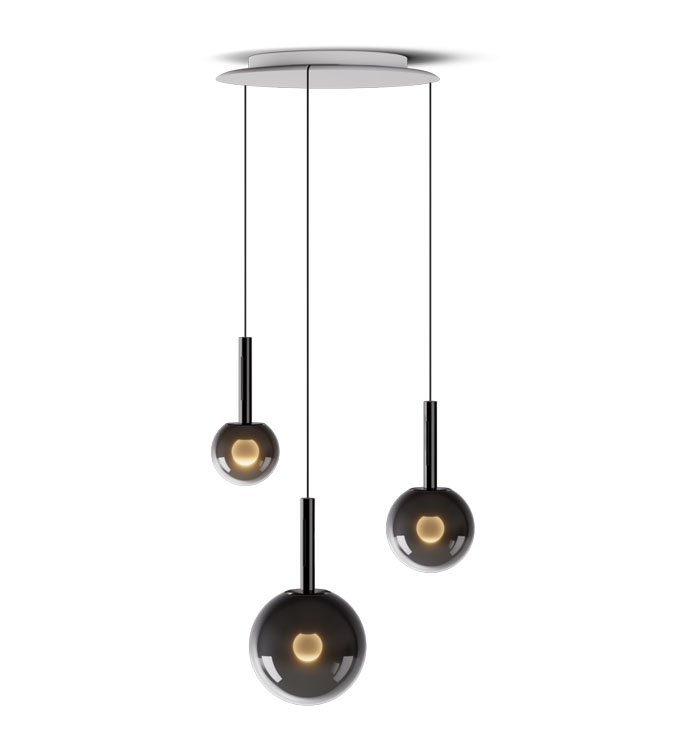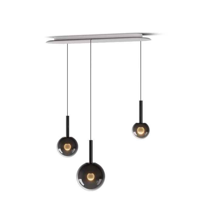 Occhio Luna Sospeso Cloud 3 is een cluster hanglamp met drie glazen bollen, waarbij elke bol vrij zweeft en het licht in prachtige, dynamische patronen weerkaatst. Het ontwerp is gebaseerd op de maan-geïnspireerde esthetiek van de Luna Sospeso-serie en combineert minimalistische elegantie met functioneel licht.