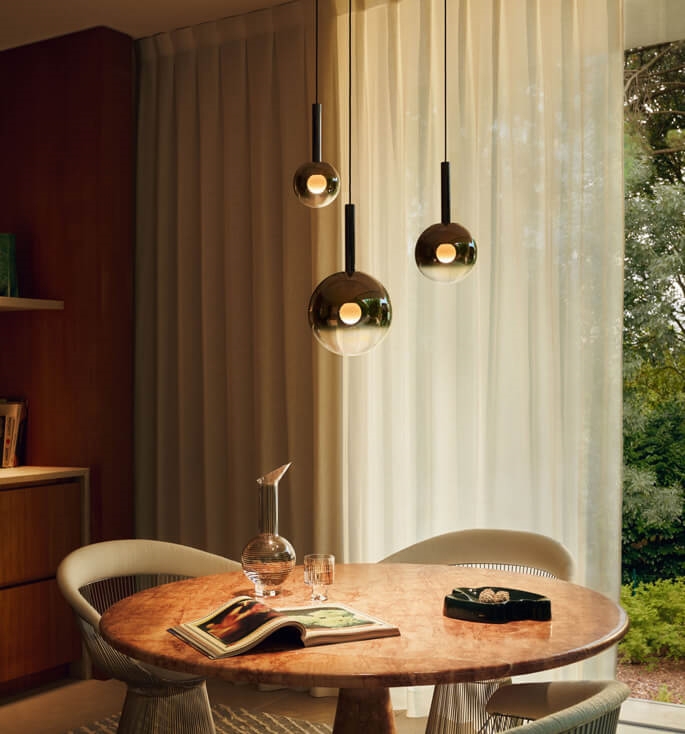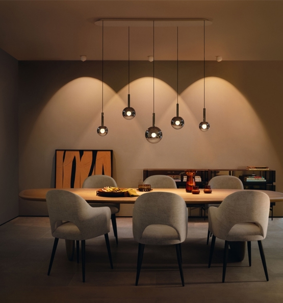 Elke bol bevat Occhio's Fireball-technologie, die krachtige LED-verlichting biedt zonder verblinding en met een aangename neerwaartse lichtverdeling. Het licht kan worden aangepast via touchless control of de Occhio Air-app, en de kleurtemperatuur kan worden geregeld tussen 2700K en 4000K. Een fysieke afstandsbediening kan worden bijgekocht.