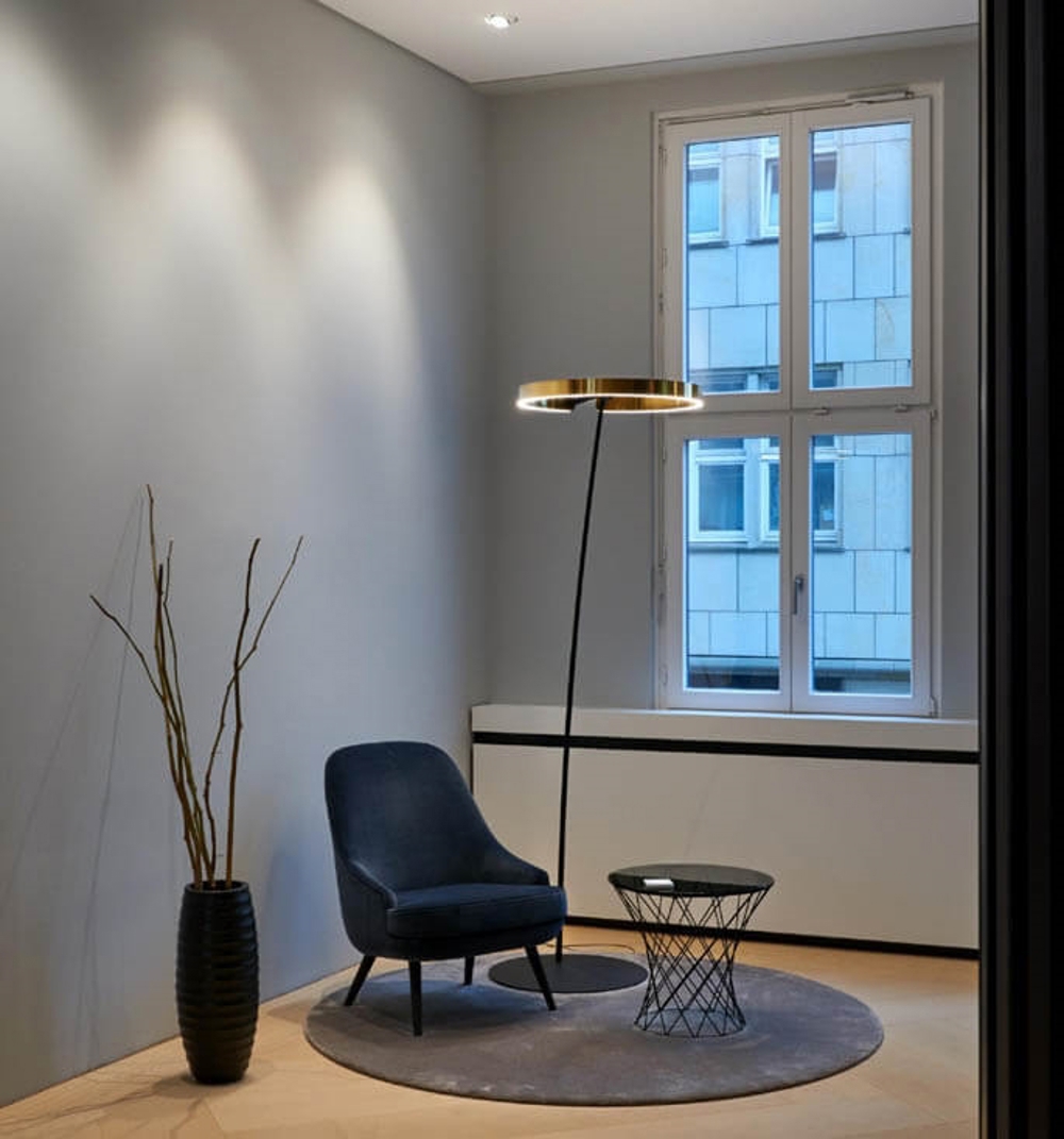 Mito Raggio vloerlamp van Occhio heeft een uitzonderlijke lichttechniek en design van topklasse! Mito Raggio is perfect om de eettafel of woonkamer te verlichten met zijn dubbelzijdige licht, omdat de lamp een brede lichtverdeling heeft. Tegelijkertijd geeft de fantastische vloerlamp ook een opwaarts licht, dat een geweldige verlichting biedt voor de rest van de kamer.